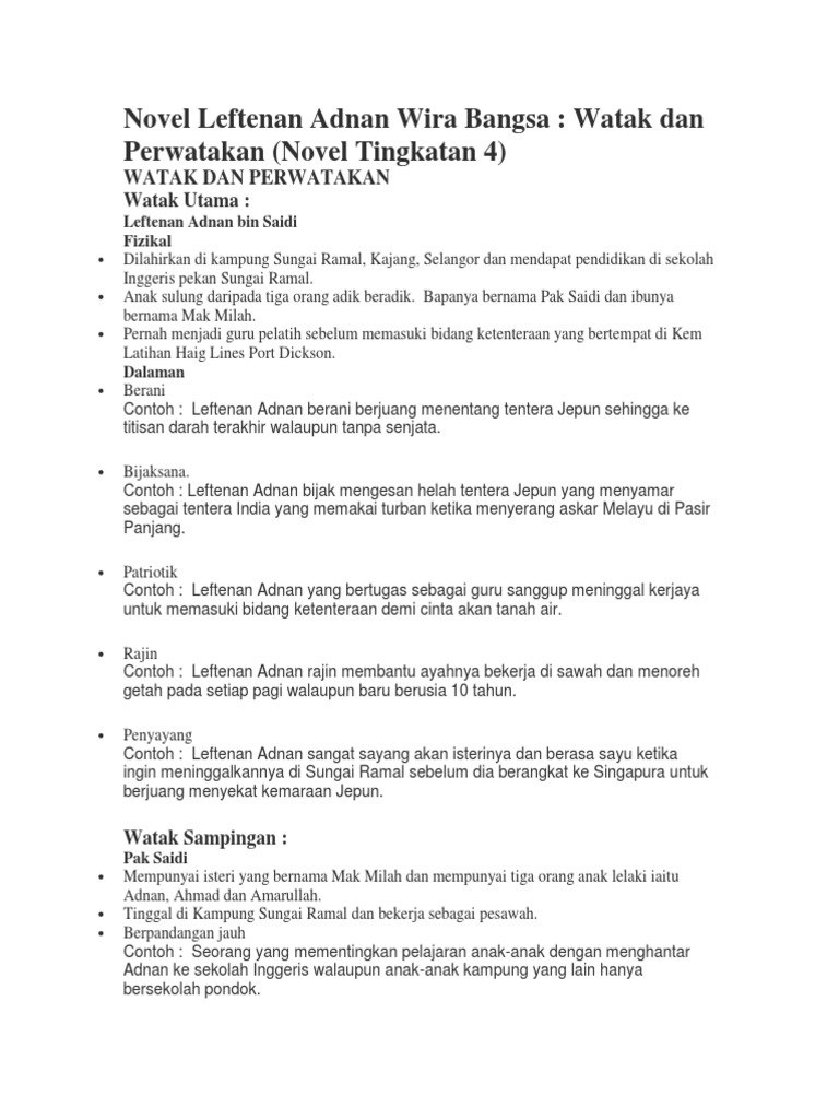 Nota Ringkas Novel Leftenan Adnan Wira Bangsa Membalik Buku Halaman 1 15 Anyflip